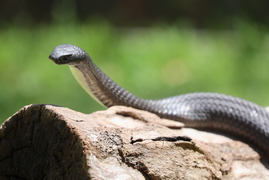 The spotted black snake is also known as the blue-bellied black snake and is a venomous snake endemic to Australia. It can be variable in colour ranging from uniform black above, through to various degrees of spotting. Its underside can be grey or blue-grey and can reach a total length of 1.5m.