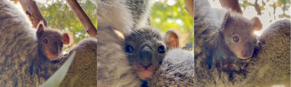 “I was doing some maintenance on the koala yards when I looked up and saw the cutest little head sticking out of the pouch with tiny ears and a massive nose,” Brandon said.